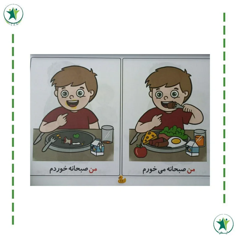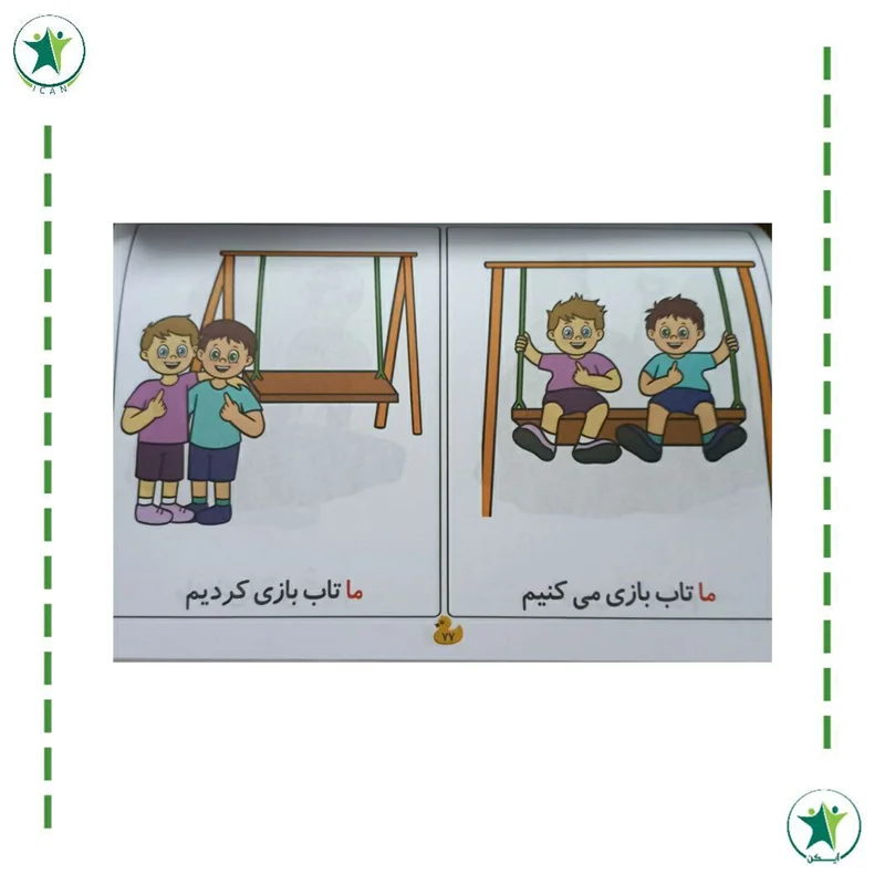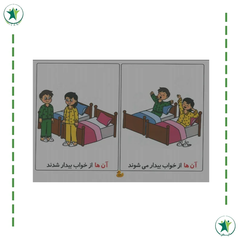 کودکان در طی روند رشد زبان ممکن است زمان های افعال و ضمائر را اشتباه به کار ببرند یا اصلا به کار نبرند؛ این کتاب به درمانگر یا والدین کمک میکند که آموزش ساده تر شود و برای کودک جذاب تر باشد. این کتاب برای تمام کودکان با سن عقلی ۵_۲سال مناسب بوده و با هدف آموزش ضمائر(من، تو، او، ما،شما،آن ها) و زمان های حال استمراری و گذشته ساده چاپ شده است.